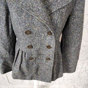 Cynthia Steffe Gray Tweed 100% Wool Double Breasted Peplum Peacoat