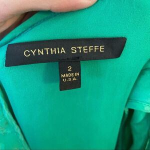 Cynthia Steffe women’s green 100% silk ruffled dress in size 2