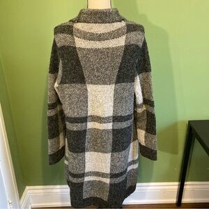 Stylish plaid cardigan in black and gray tones. Cozy and warm design. #plaid #cardigan #black #gray