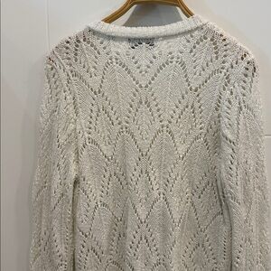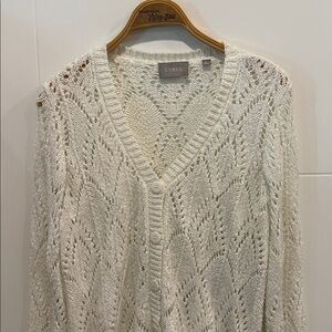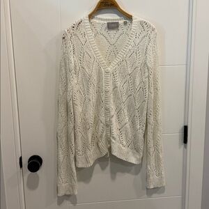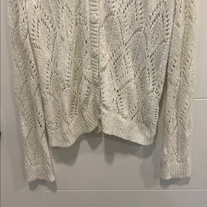 Elegant cream cardigan with intricate knit design. Perfect for layering.