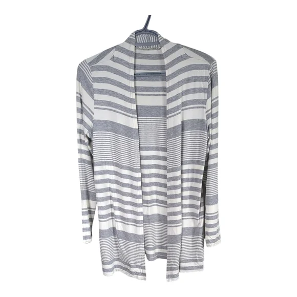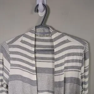 Cyrus Lightweight Striped Grey and White Long Sleeve Open Front Cardigan Size Sm