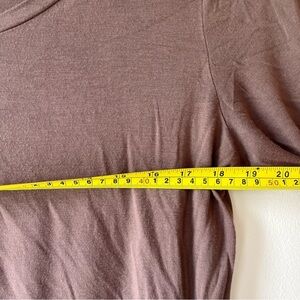 Effortless and comfortable, this Cyrus long sleeve top in a soft mauve-brown shade is the perfect neutral basic for layering or wearing on its own. Made from a breathable and stretchy blend of rayon and spandex, it features a flattering V-neckline and a relaxed silhouette. Great for everyday wear, casual outings, or lounging. Size Medium. In good pre-owned condition—minor wear, freshly laundered.