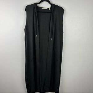 Cyrus Open Front Lagenlook Sleeveless Hooded Duster Cardigan Black Large