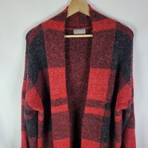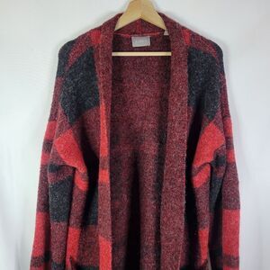 Cyrus Plaid Red and Black Long Duster Cardigan