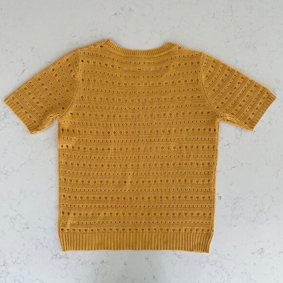 Cyrus Short Sleeve Crew Neck Pointelle 100% Acrylic Knit Top in Mustard Gold NWOT