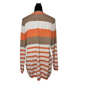 Keywords: Cyrus cardigan, striped knit sweater, orange neutral cardigan