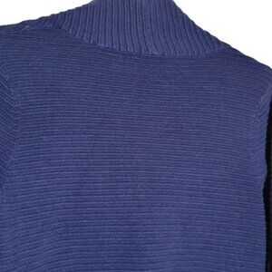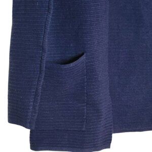 Cyrus very sift navy blue open cardigan vest, pocket front, ribbed