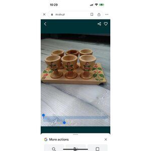 “Czantoria” Set of 6 Wood Egg Cups & Wood Tray |Handcrafted | Poland | Folk Art