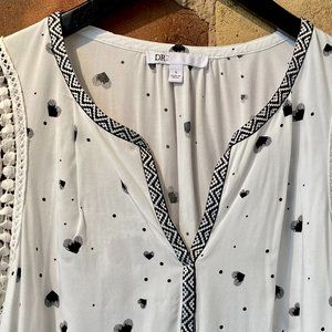 Tags: heart-patterned top, women’s summer top, v-neck top, black & white women’s top, women’s small top, summer, fun, flirty