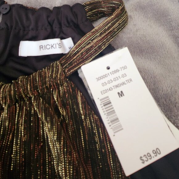 D31 NEW Party halter b'ful gold metallic very stretchy Ricki's 20-22.5" wide 23L