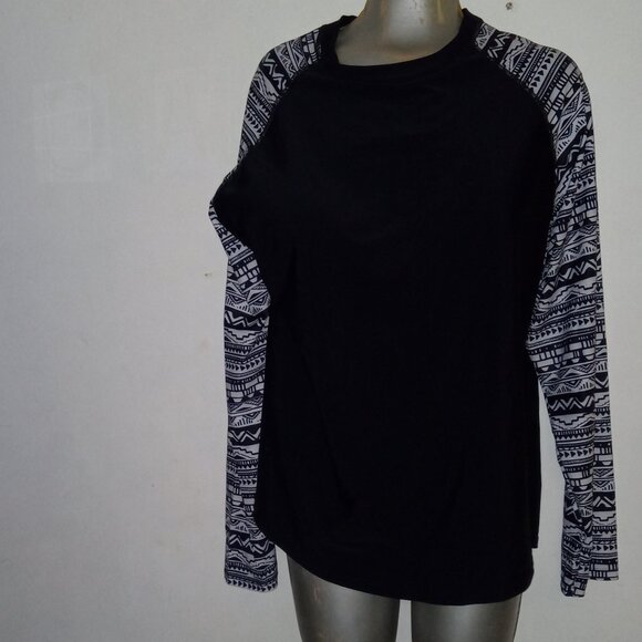 Long Sleeve Built In Bra Swim Top Black And White Size 22 Women Brand New With Tag