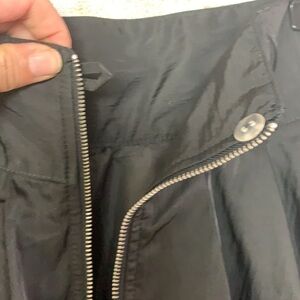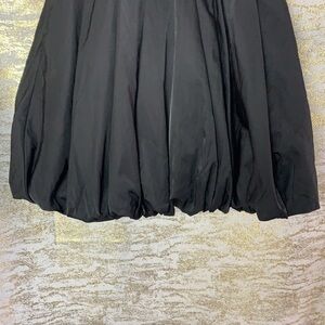 - Very cute black bubble hem skirt with belt loops and back zipper closure.very soft fabric feels like satin,very flowy