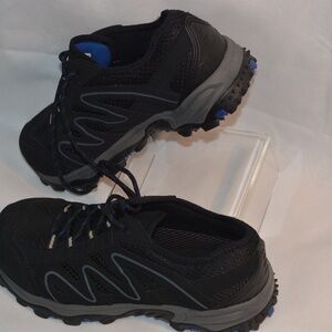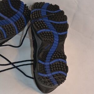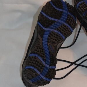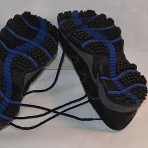 Removable contoured EVA insole. 2 mm anti-fatigue layer for added comfort. Additional Eva heel and forefoot pod to add shock absorption. EVA midsole for cushion and support. Tarantula Anti Slip. Black with Blue accents. NWT SZ 7.5 Mens