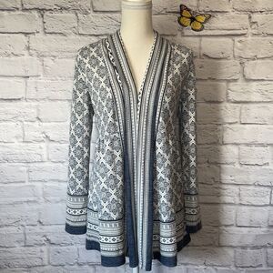 DALIA Blue & White Pattern Open-Front Cardigan, Size Small