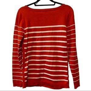 DALIA Red/White Stripe Long Sleeve Crew Neck Sweater with Shoulder Buttons Small