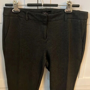 DALIA Stretch jersey material tapered pants with slant front pockets. Zipper and hook closure. Color is dark grey. Excellent condition.