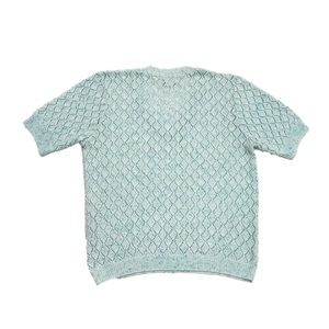 D’ALLAIRDS Crochet knitted top baby blue short sleeves fits S M made in Canada