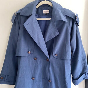 Such a beautiful light-weight trench coat, perfect for the transition of the seasons! It’s a heathered navy that is so pretty. Belt included. Beautiful buttons and detailing.