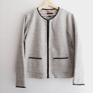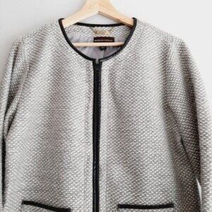 DANA BUCHMAN Wool Blend Textured Full-zip Blazer Jacket Grey Sz L