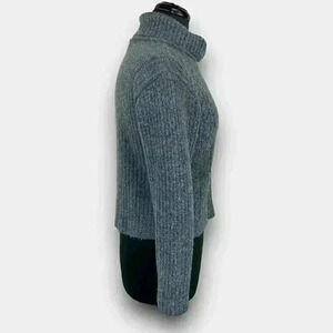 DANIEL HECHTER Petites ladies cropped ribbed medium blue turtleneck