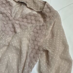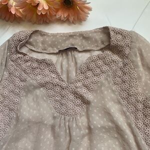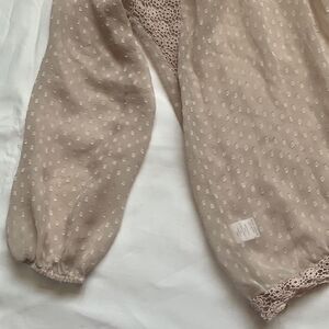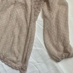 Nude crochet top front detail Swiss dot. Soft and trendy, romantic boho style. Pit to pit 20”, shoulder to hem 26”. Great condition.