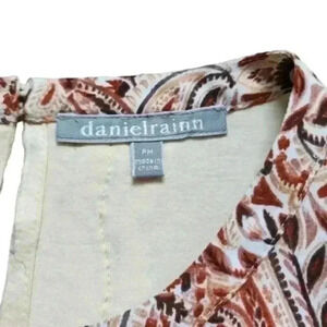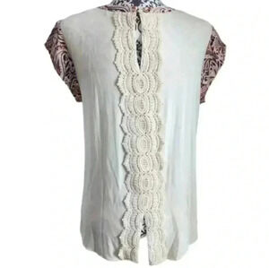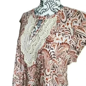 DANIEL Rainn Top Crochet Paisley Boho Peasant Print Cream Orange Brown Women's M