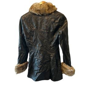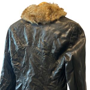 DANIER 100% Leather Faux Fur Trim Zip Up Lightweight Jacket 4-6