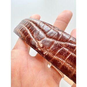 DANIER Brown Croc Embossed Leather Brushed Gold Buckle Hip Belt, Size M