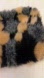 Danier grey, black and tan multi colour faux fur scarf. 100% acrylic. Velvet backing with a strip across to hold the end of the scarf in place if you wish to style it that way.