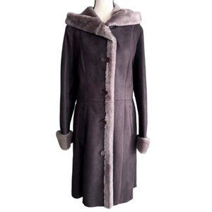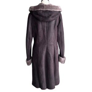 DANIER, GORGEOUS BROWN HOODED COAT MADE OF GENUINE LAMB FUR ( SHEARED AND DYED), SZ. S
