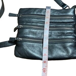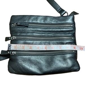DANIER Grey Genuine Leather Crossbody Multi Zipper Pockets Key Lanyard