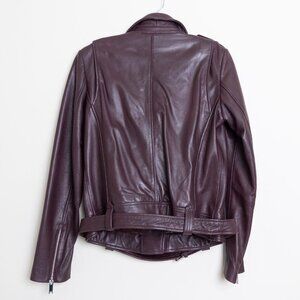 DANIER Juliette Genuine Leather Moto Jacket in Bordeaux