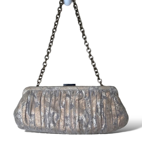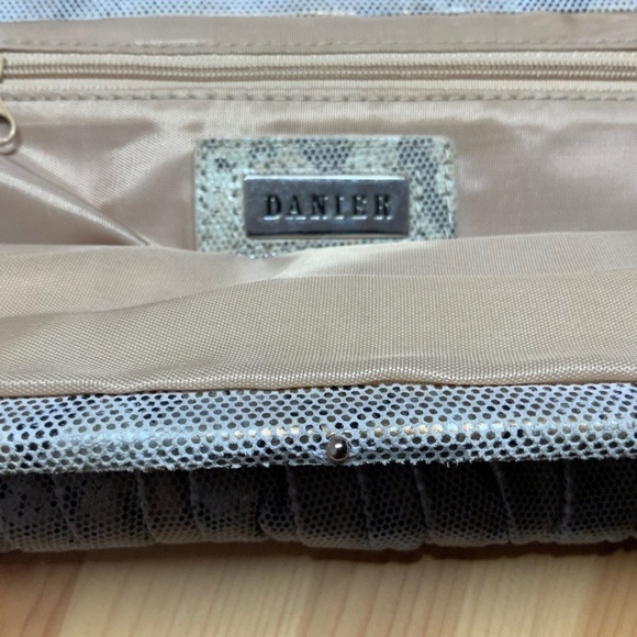 DANIER LEATHER 100% Genuine Leather Snakeskin Print Pleated Clutch Evening Bag