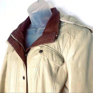 DANIER LEATHER CREAM BROWN HOODED WOMAN JACKET ELASTIC WAISTBAND SIZE MEDIUM