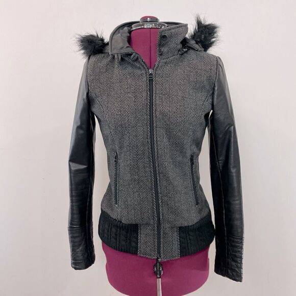 DANIER Leather Sleeves Herringbone print Wool Bomber Jacket Double Lined