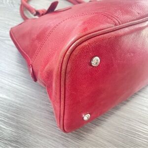Make a bold statement with this oversized red leather tote bag by Danier, perfect for every event from work to travel. The superb red tone, durable craftsmanship, and versatile compartments make this bag a practical yet stylish addition to your collection.
