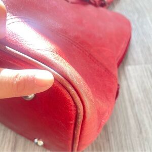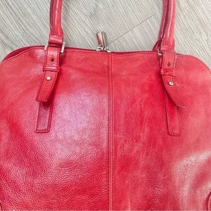Danier red leather tote bag, oversized red shoulder bag, preloved leather bag, large tote for travel, gym tote bag, work-friendly leather bag, versatile red bag, designer leather bag, Danier oversized tote, red tote for office.