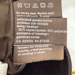 100% genuine suede leather pants, with 50% rayon, 50% polyester lining. Incredibly soft leather.