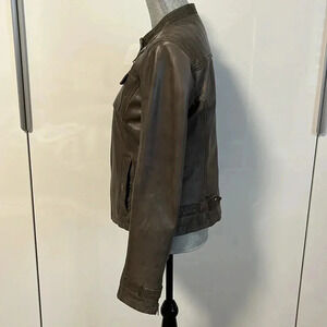 DANIER Taupe Brown Genuine Leather Moto Jacket Like New, Size S