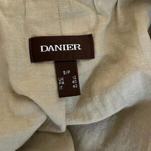 DANIER leather jacket Moto style is fitted and hits just below waist. Tons of pockets with 2 small at shoulder with strap and snap button closure, 2 at chest with snap button closure, 2 front side pockets with snap button closure, 1 inside pocket. Excellent Condition like new.