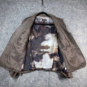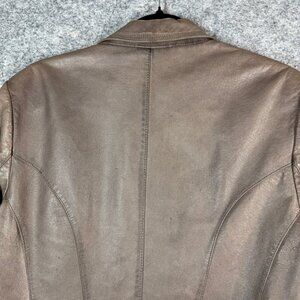 A great leather jacket in a unique grey-taupe colour. Solid metal buttons and unique inner lining.