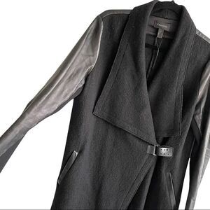 DANIER Wool Leather Waterfall Wrap Asymmetrical Jacket Coat