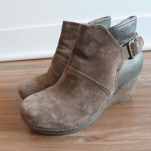 DANSKO Shirley Suede Leather Stacked Heel Ankle Boots in Taupe Size EU 40