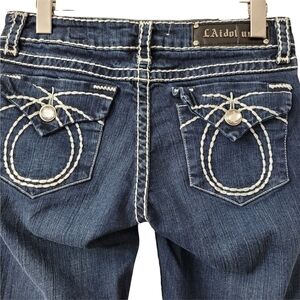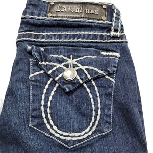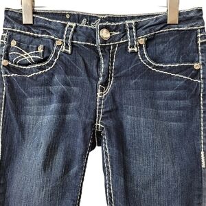 Women's Jeans Womens Size 9 W:31 L:18 Blue Capri Bling Embroidered Denim Cropped Jeans.