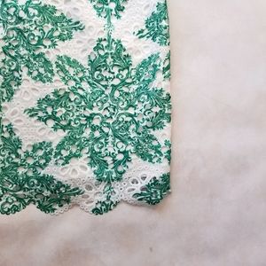 Gorgeous eyelet sheath dress by Darling London. Fully lined, cap sleeves with exposed back zipper. Fabric does not provide much stretch.