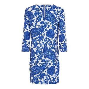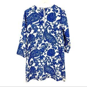 DARLING Porcelain Blue White Paisley Floral Print Brigette Tunic Dress Size S