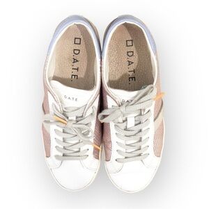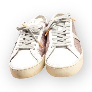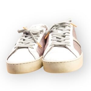 These cute summer sneakers are in excellent used condition. Not worn many times they have lots of life left. Small, light, scratch on right toe box.