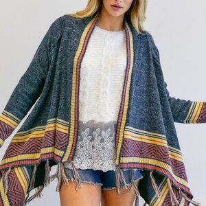 FRINGE PRINTED LONG SLEEVE LOOSE FIT CARDIGAN