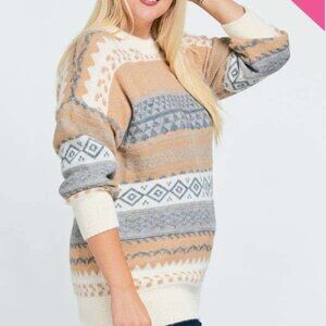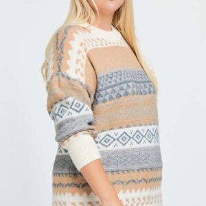 DAVI & DANI Fair Isle Knit Sweater Beige Gray White Cozy Winter Pullover