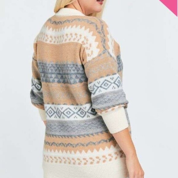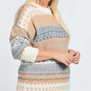 DAVI & DANI Fair Isle Knit Sweater Beige Gray White Cozy Winter Pullover